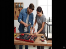 Praktyczny zestaw narzędzi umieszczony w poręcznej walizce. Zawartość zestawu: nóż uniwersalny, 8 szt. kluczy imbusowych, 10 końcówek wkrętakowych, 2 szt. wkrętaków, uchwyt do bitów, taśma izolacyjna do wiązek przewodów, nożyczki techniczne, próbnik napięcia, klucz nastawny 6”, młotek, szczypce wydłużone 6”, taśma samoprzylepna 3M, 2 szt. precyzyjnych wkrętaków, 80 szt. elementów złącznych (np: gwoździe, śruby, nakrętki, kołki itp.), walizka narzędziowa.